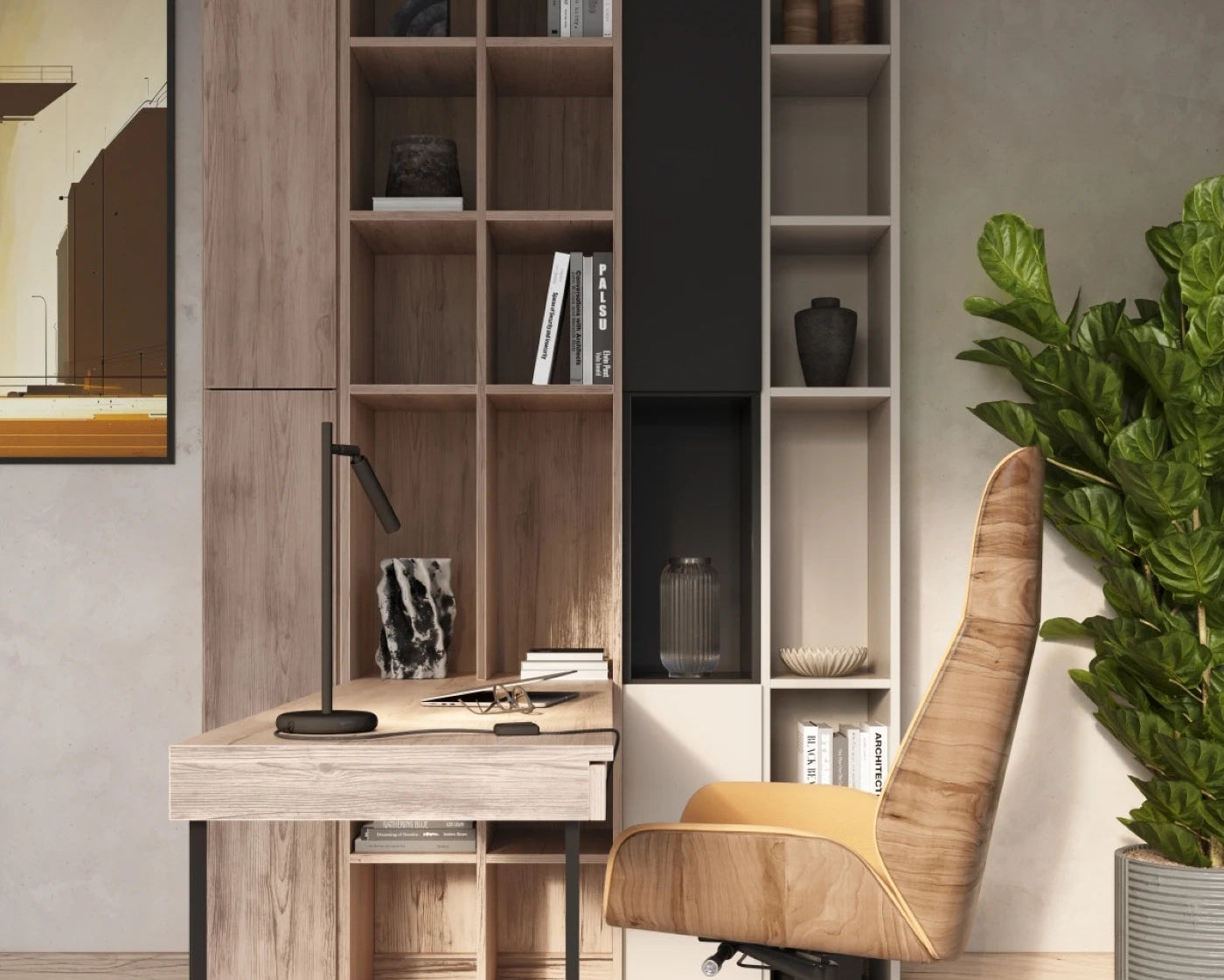 Je nach Lichtfarbe beeinflussen sie die Stimmung: kühles Weiß steigert die Aufmerksamkeit, warmes Licht sorgt am Abend für Ruhe. So entsteht ein Arbeitsplatz, der sowohl produktiv als auch ästhetisch inspiriert – perfekt ausgeleuchtet von der Wand.