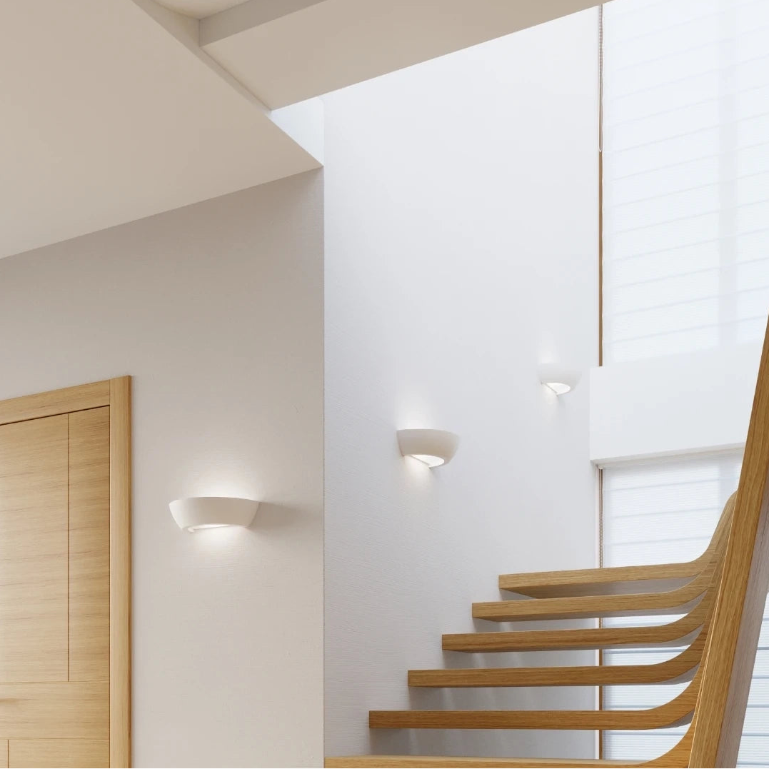 Eine harmonisch gesetzte Treppenbeleuchtung schafft Orientierung und Atmosphäre zugleich. Mehrere Wandleuchten entlang der Stufen bringen Struktur in den Raum und betonen die vertikale Bewegung des Aufgangs. Das indirekte Licht lenkt den Blick sanft nach oben, ohne zu blenden – ideal für den täglichen Gebrauch.
