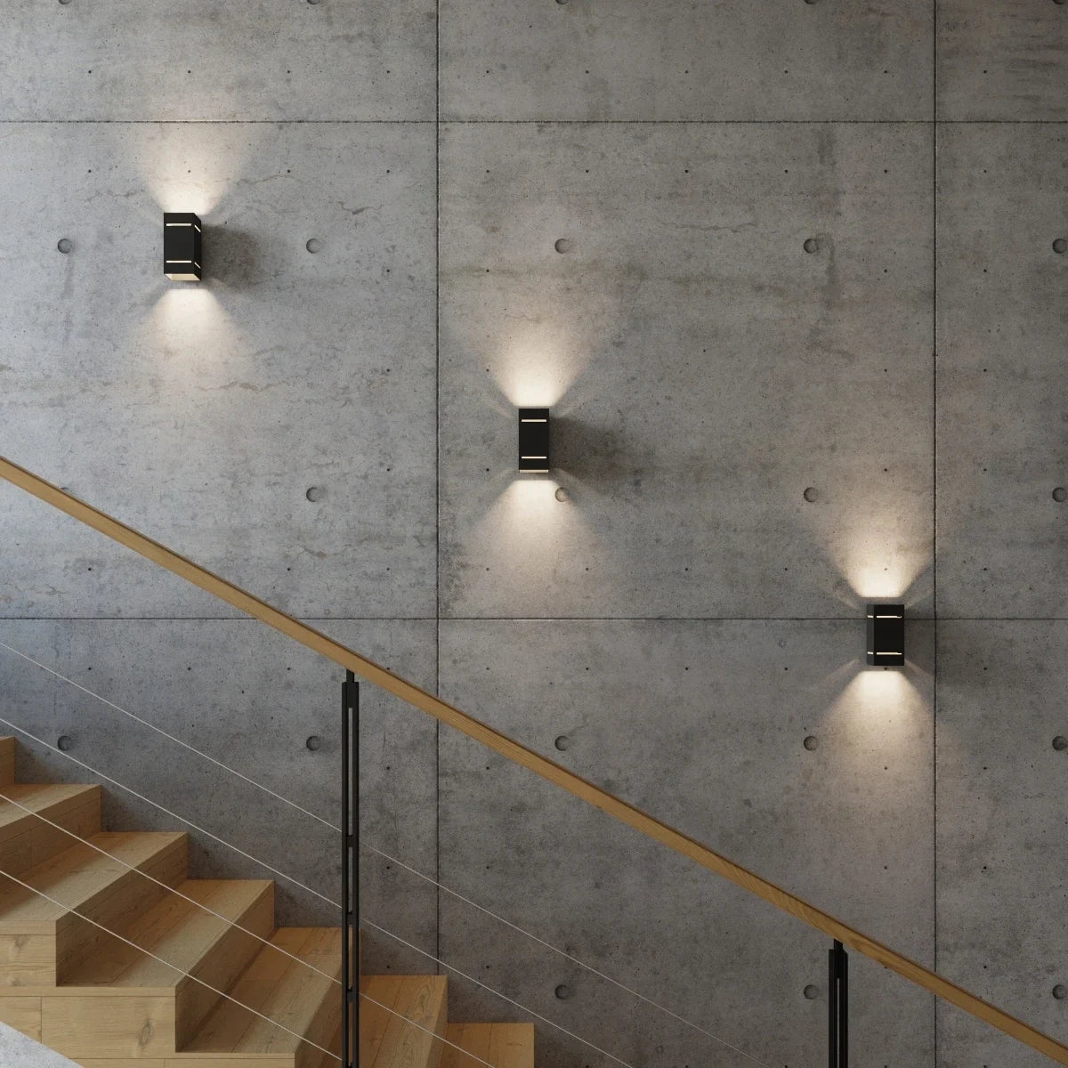 Treppenleuchten können weit mehr als nur Wege erhellen – sie inszenieren Architektur. An Beton- oder Strukturwänden erzeugen sie klare Lichtkegel, die Formen und Materialien betonen. Durch gezielte Platzierung entsteht ein rhythmisches Spiel aus Licht und Schatten, das der Wand Tiefe und Dynamik verleiht.