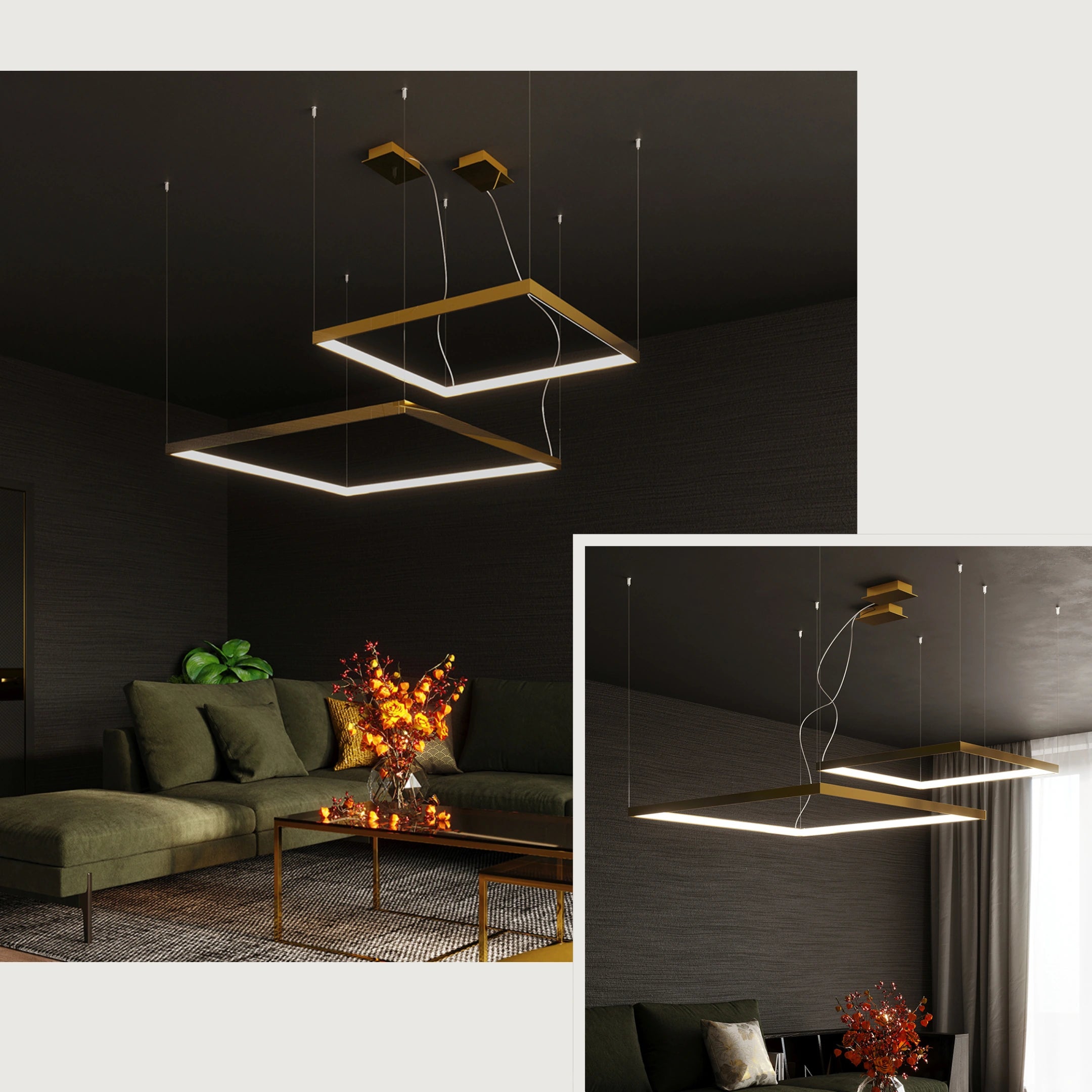 NELYA kombiniert minimalistisches Design mit einer klaren, geometrischen Formensprache. Die rechteckige Silhouette wirkt modern und zurückhaltend, während das integrierte LED-Modul für eine breit streuende, angenehme Lichtwirkung sorgt. Durch die dezente Aufhängung entsteht eine harmonische Gesamtwirkung, die sich ideal für Schlaf-, Wohn- und Essbereiche eignet.