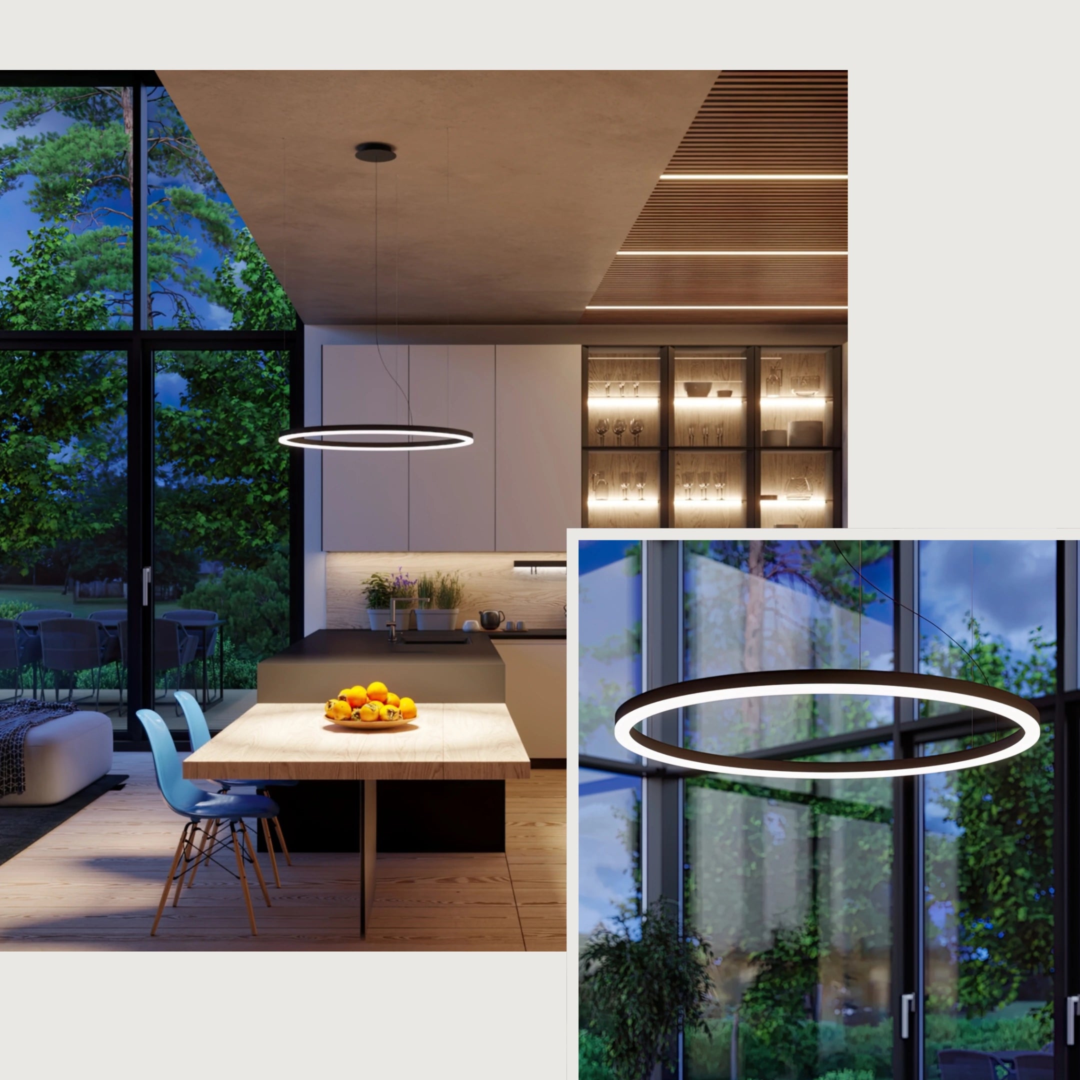 - Sanfte Lichtverteilung durch nach unten gerichtete LED-Kreise