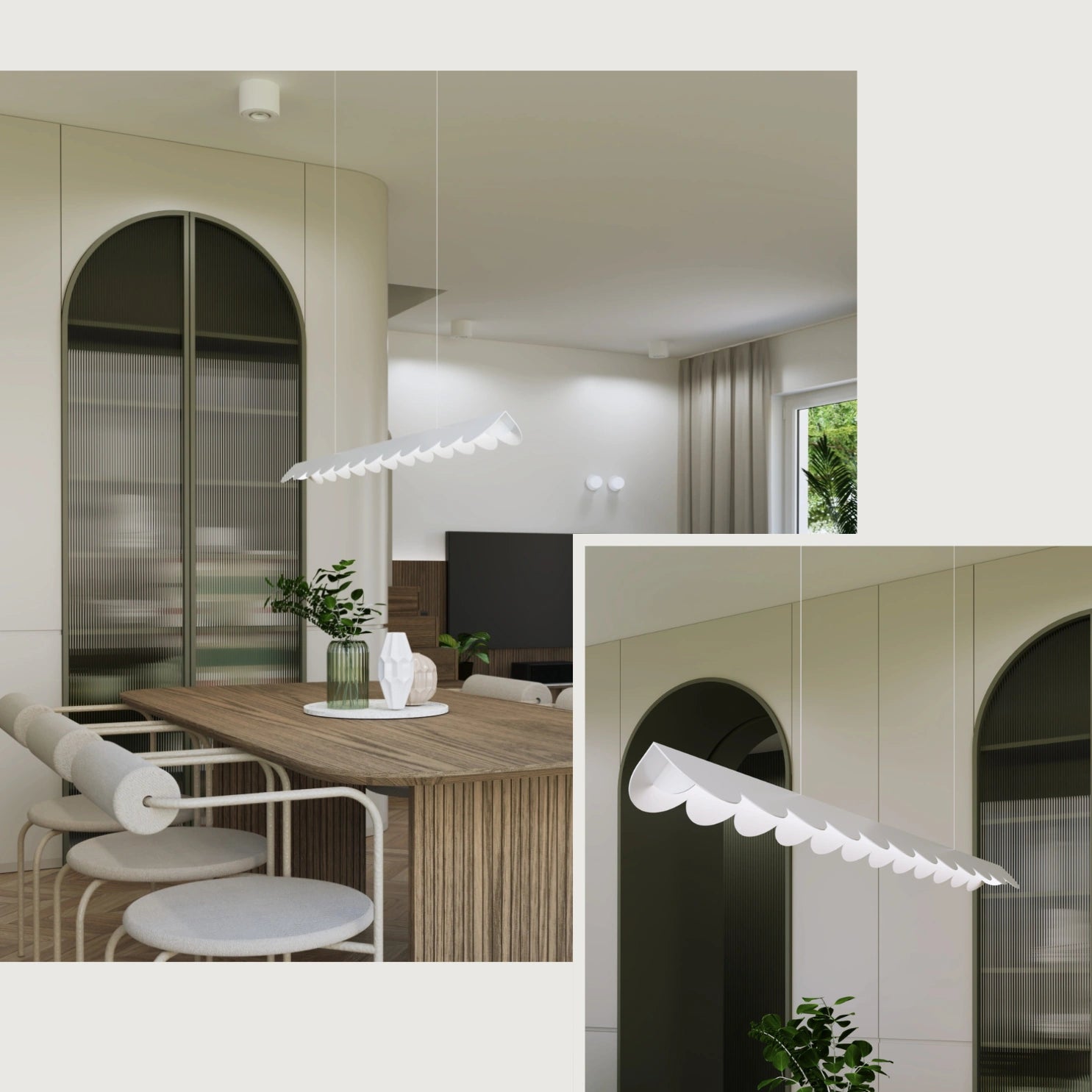 Die BISCUIT Hängeleuchte kombiniert eine charakteristische Wellenform mit einem integrierten LED-Modul. Das markante Design setzt einen modernen Akzent und eignet sich für Essbereiche, Kücheninseln oder Wohnräume. Durch die klare Formgebung entsteht eine gleichmäßige Lichtwirkung, die sich harmonisch in private und gewerbliche Interieurs einfügt.