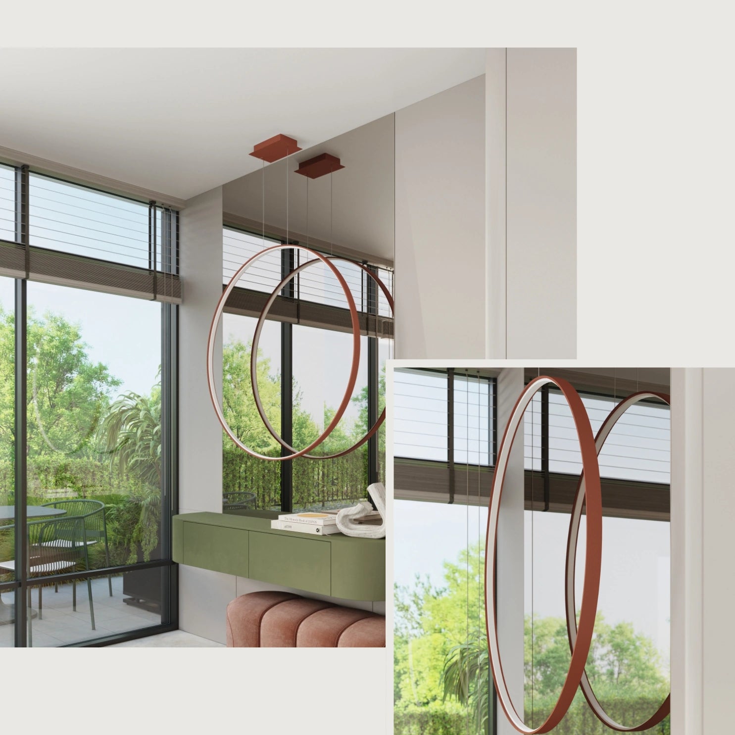 Die RIO 78 Pendelleuchte verbindet moderne Geometrie mit einer eleganten, minimalistischen Ausstrahlung. Der schlanke Aluminiumring erzeugt ein harmonisches 3000K-Licht und wirkt dank des feinen Profils besonders leicht und schwebend. Durch ihre Größe eignet sich RIO 78 ideal für Essbereiche, Wohnzimmer, offene Flure oder repräsentative Räume wie Lobbys oder Spas. Die präzise Verarbeitung und das charakteristische Profil unterstreichen den hochwertigen Charakter der gesamten RIO-Kollektion.