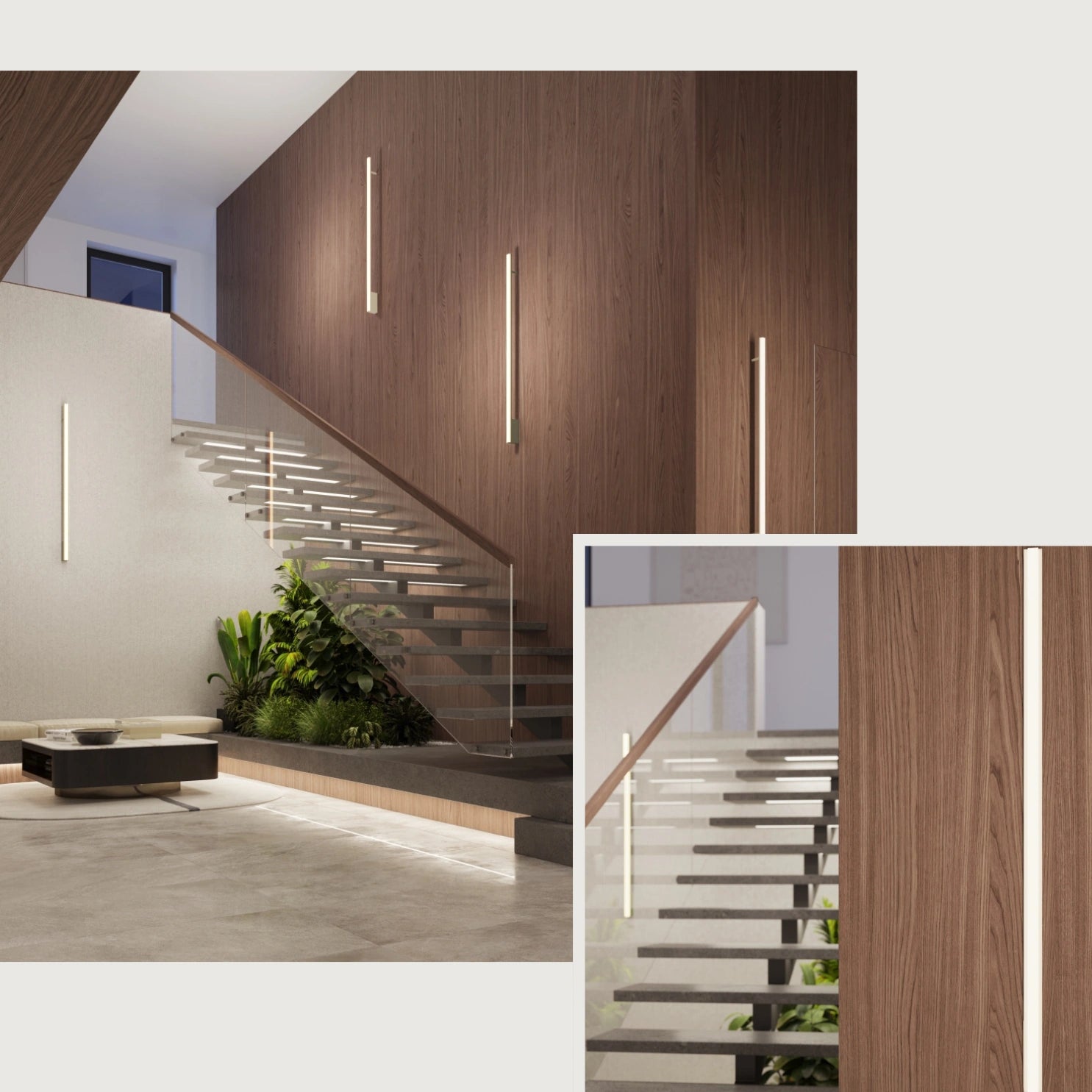 - Lange, lineare Form für großzügige Wandinszenierungen