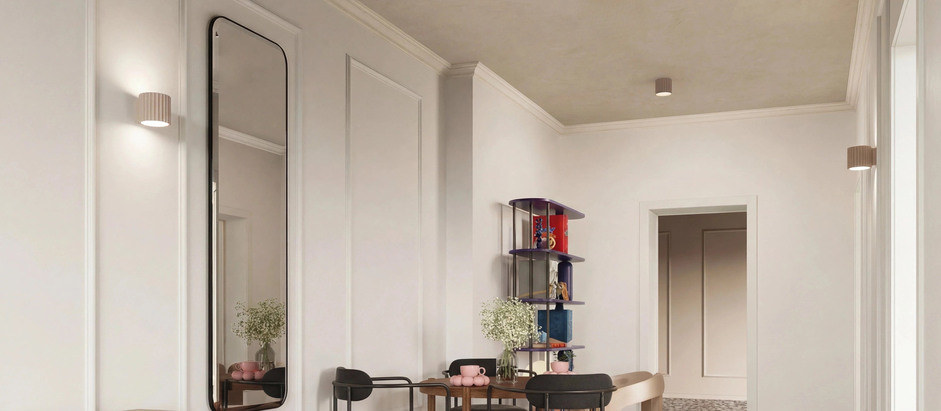 AURA vereint Minimalismus und Ausdruckskraft. Die feine Riffelstruktur verleiht jeder Leuchte Charakter und fügt sich harmonisch in moderne, skandinavische Interieurs ein – stilvolles Understatement für anspruchsvolle Räume.